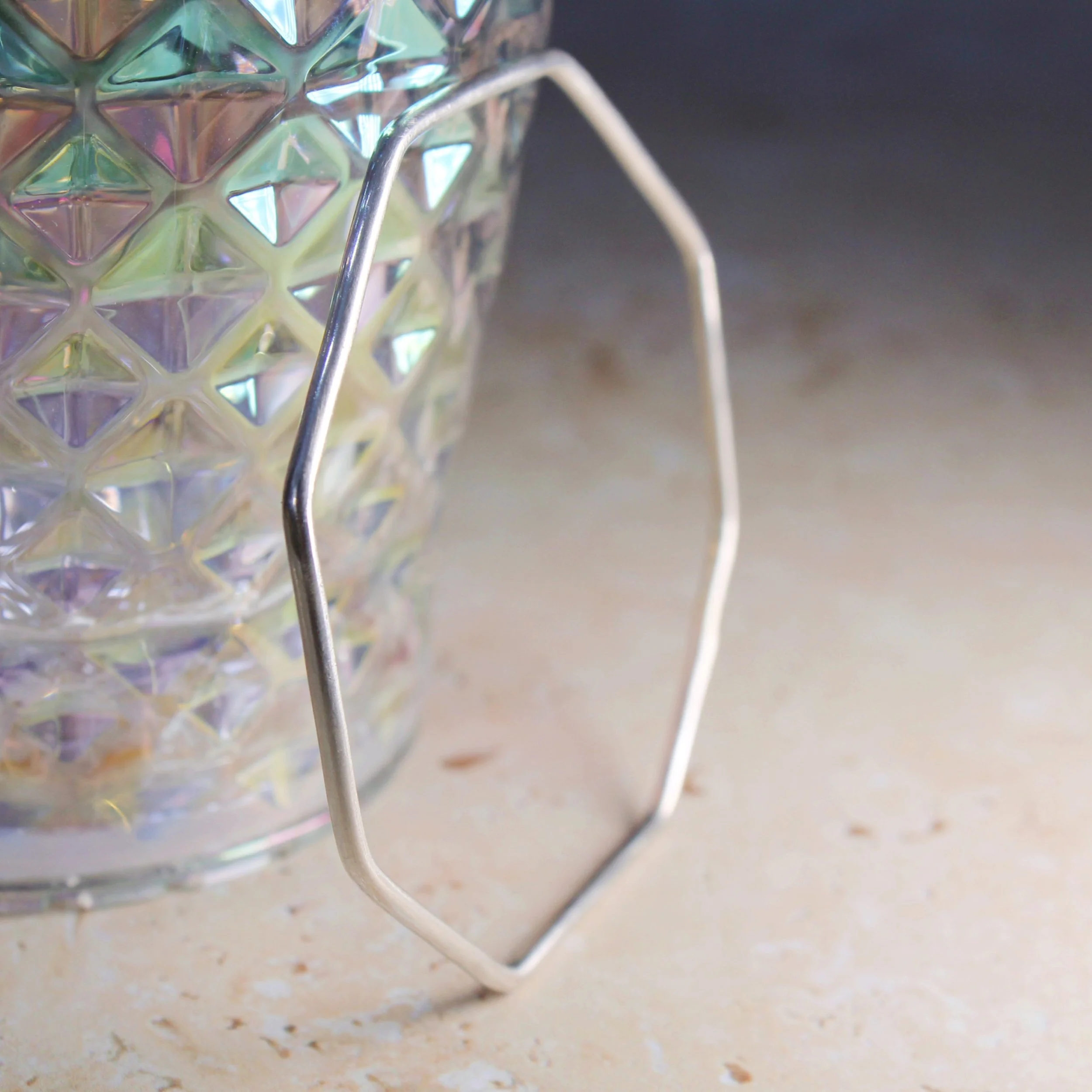 Individual Silver octagonal stacking bangles available in two different finishes.